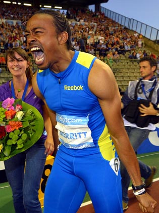 In the London Olympic Games, the player's merry with 12 seconds 92 grades won the 110 m hurdles champion. After the Olympic Games, Merritt, although in lausanne standing jump start foul was sent out, but the American general then after got the Birmingham station and BaiLinZhan champion, this year not only seven times ran into 13 seconds mark, he even ambitious to stand in Brussels to new world record by impact.